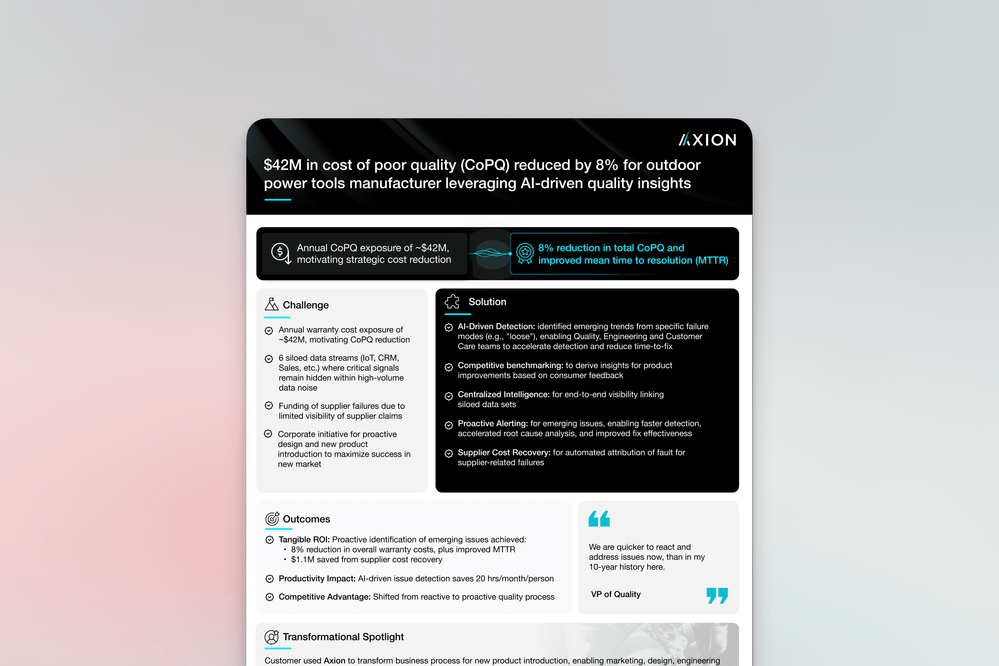 Quality Risk and COPQ Improvement Medical Device Leader Axion AI Case Study
